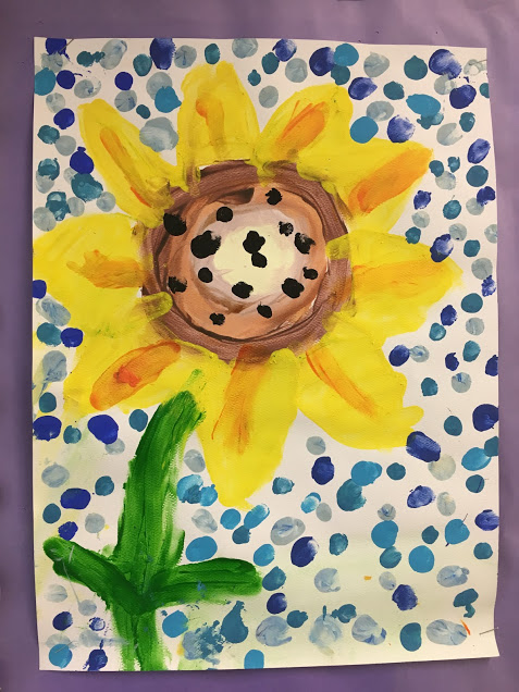 These Van Gogh inspired sunflowers were completely FINGER PAINTED. It was MESSY and FUN!